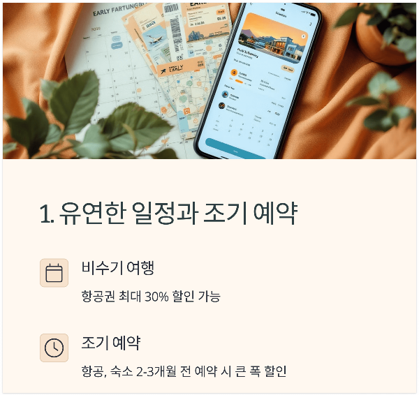 | 항공권 | 20~30% | 주중 출발, 비수기 여행, 비공개 브라우징 |