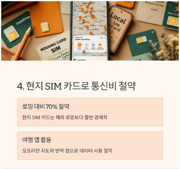 1. 국제 로밍 대신 현지 SIM 카드를 사용하면 데이터 요금을 하루에 약 70%까지 절약할 수 있습니다.