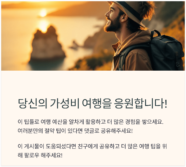 | 숙박 | 30~50% | 조기 예약, 비수기, 부가 서비스 포함 숙소 |