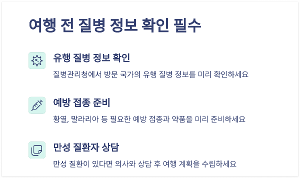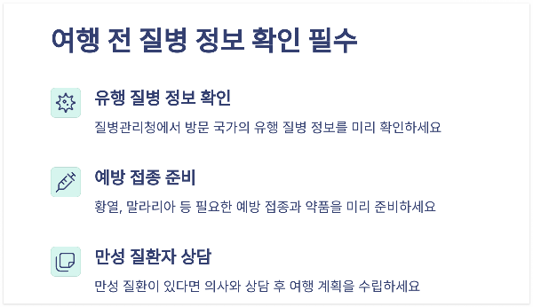 여행 전 사전 정보 수집은 응급 상황 예방의 첫걸음입니다. 다음 내용을 반드시 확인하세요: